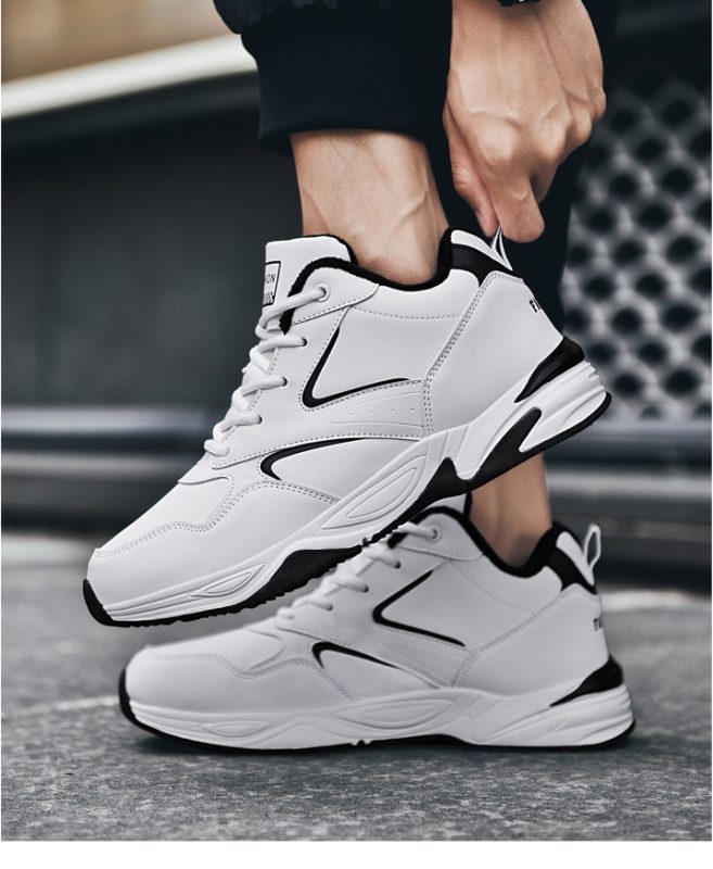 Men’s Premium White & Black Casual Sports Sneakers – Trendy Urban Streetwear Shoes