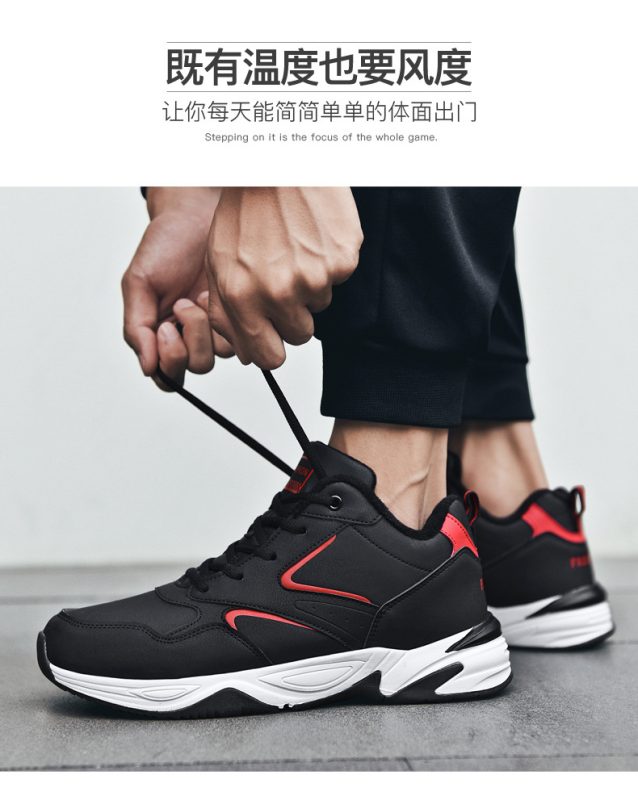 Men’s Stylish Black & Red Casual Sports Sneakers – Fashionable Winter Warm Shoes